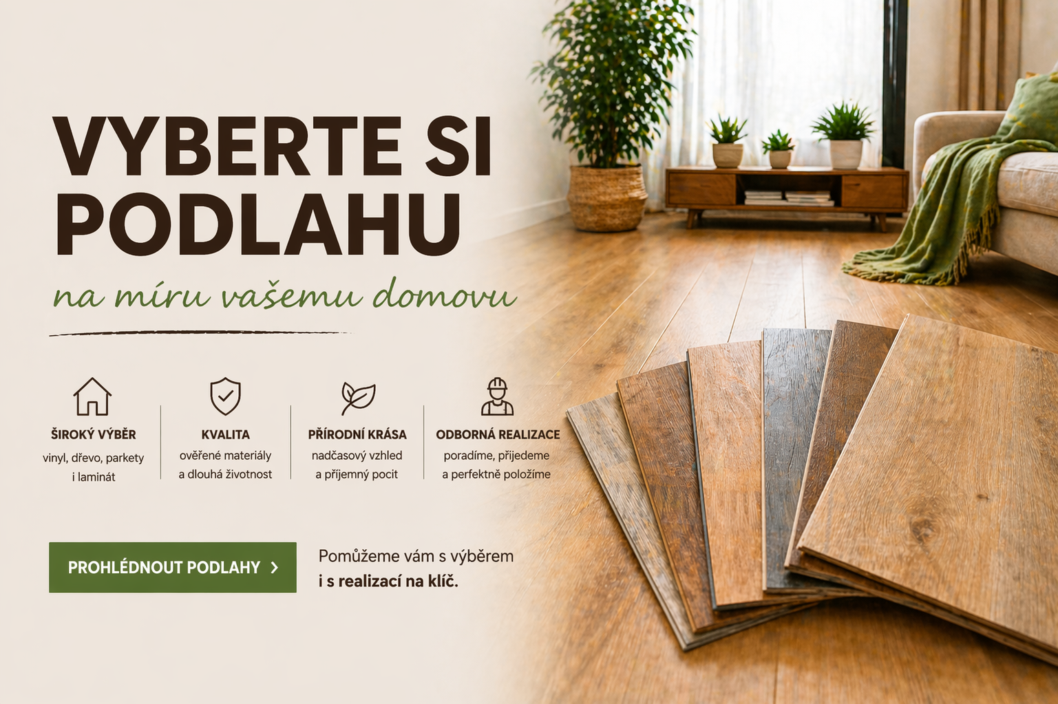 Nabízíme široký výběr podlahových krytin – vinylové podlahy, dřevěné podlahy, parkety, plovoucí podlahy, koberce a PVC podlahy. Ať už renovujete byt, stavíte nový dům nebo potřebujete vyřešit podlahu v komerčních prostorách, u nás si vyberete.